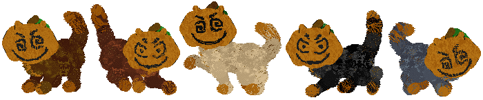 Made for Ringor's pumpkin carving contest, where to objective was to hex a pet off their pumpkin grinz file! There are two of each color: one with a swirly-eyed face, and one with an angry face.