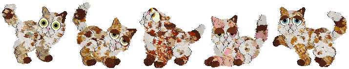 The concept here was to combine traits from bred petz that cannot naturally occur together! These are totally OW-free. ;) There are two of each variety, eye colors can be naturally occurring colors (or shades very close to natural colors) only.