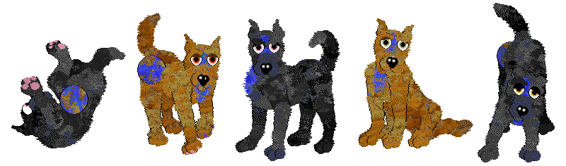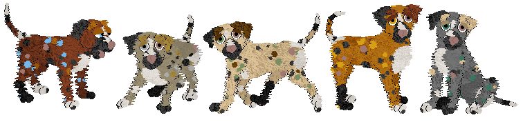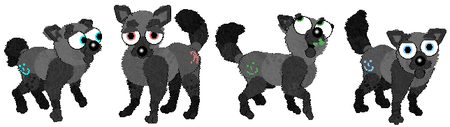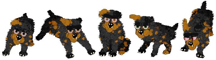 These (unrecognizable dachs)hunds came about as part of the Petzy Book Bingo and are very, very loosely based upon the stray dog in Gerald's Game. Lots of fun to play around with coat colors on!