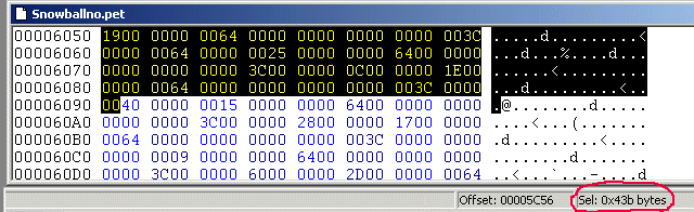 Immediately after that, in a non-trotting pet, you should see a hex number that isn't 00 there. It could be anything at all except for 00; in this example it's hex 40.