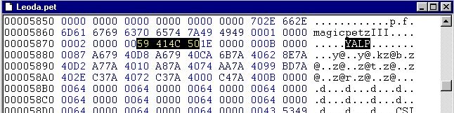 and then find the p.f.magicpetzIII which comes after that. This is important -- it is the one which comes after, i.e. lower down the file, not above YALP.