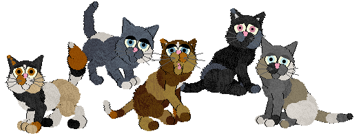 The black patchwork is a lot like the white patchwork, except that its body is black and it also has a chest patch and face streak. These are always white and don't have to match with the other markings, which means a black patchwork can be a tricolour. Again, just like the white patchwork, the "black" in black patchwork has been forgotten and any colour cat with the right markings will be considered a patchwork.