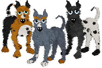 Paws: Dane, same solid colour as body, Poodle, Scottie, Mutt or Dali markings