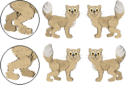 The outlines sitting in unusual places - that is, on the opposite side of where they would naturally be - is often a dead giveaway that the picture was flipped. For example, consider the tail and hip outlines on the cat above. But this rule of thumb cannot always be applied as the outlines can be hard to see on darker petz, and the position of the outlines can be changed through hexing. Neither of those things would disqualify a pet from showing.
